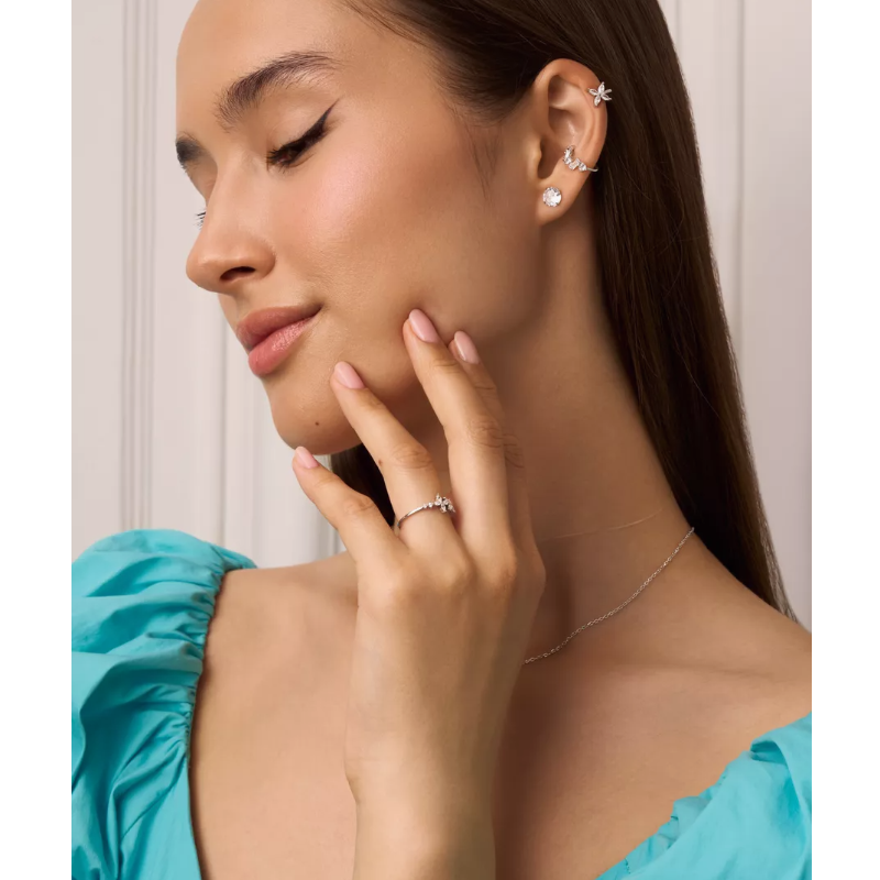 Серебряные женские каффы на хрящ от петербургского бренда MIESTILO отличаются элегантным дизайном и служат идеальным дополнением для любого случая. Одиночный кафф из серебра в виде цветка выглядит очень изысканно и подчеркнет ваш неповторимый стиль. Моносерьга обманка с фианитами изготавливается из серебра 925 пробы и покрывается родием, благодаря чему каффы без прокола становятся более износостойкими и радуют вас долгие годы. Серьги каффы на уши — это всегда модное и актуальное украшение. Тонкая серьга кафф с камнями прекрасно сочетается с различной одеждой, будь то повседневный наряд или вечерний образ на торжественное мероприятие. Чтобы закрепить сережку без застежки на ухе, воспользуйтесь нашей инструкцией в карточке товара. Изделие легкое, можно быстро закрепить на хрящике, обеспечивая надежное крепление на ушах. Каффы на ухо серебро 925 пробы протестированы и безопасны. Моносерьга серебро 925 — отличный подарок жене, дочке или подруге. Блеск фианита придает особую изысканность и утонченность. А подарочная упаковка подойдет на день рождения, 8 марта, 14 февраля или для любого другого повода. Уверены, что эти ювелирные изделия из серебра станут неотъемлемой частью вашего гардероба, добавят шарма внешнему виду и подчеркнут индивидуальность.