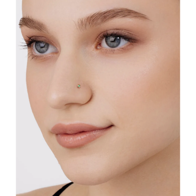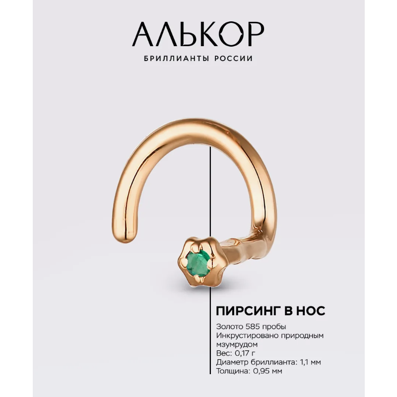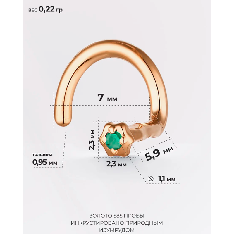 Пирсинг в нос из красного золота 585 пробы. Вставки: 1 Изумруд форма Круг 0,005 1,0 3/3.