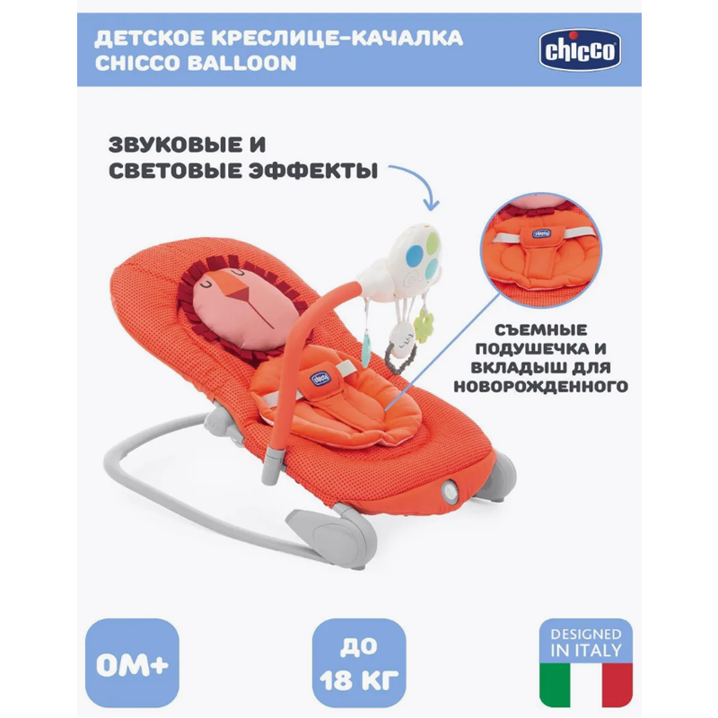 Кресло-качалка Chicco Balloon – удобный, комфортный и многофункциональный шезлонг для малышей с первых дней жизни.