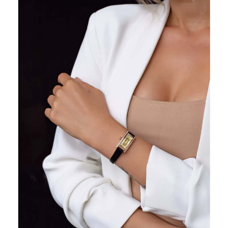 Женские часы из коллекции Lady обладают волевым характером и тонкой огранкой. Прямоугольный золотой корпус с двух сторон декорирован бриллиантами или фианитами. По периметру циферблата расположились золотистые метки. Эта модель, как и любая вечная классика, никогда не перестанет быть привлекательной! ХАРАКТЕРИСТИКИ: Средний вес драгметалла :Золото - 6,033 г Размер ушка: 10 Габаритный размер: 15,5 х 29,2 мм Габаритная высота: 7,25 мм Форма корпуса: прямоугольник Вставка: бриллианты Стекло: минеральное с сапфировым напылением Цвет циферблата: шампань Тип механизма: Кварцевый Механизм: Ronda 1032, ШВЕЙЦАРИЯ Функции: часы, минуты Материал ремешка: натуральная кожа Водостойкость: 1АТМ Элемент питания: 317 (SR516SW)