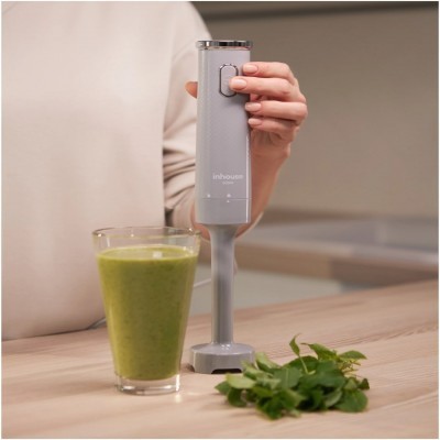 Коротко о товареЦвет товарасерыйМаксимальная мощность500 ВтМатериал корпусапластикМатериал погружной частипластикКоличество скоростей1УправлениемеханическоеНасадкидля приготовления пюре, измельчительДополнительные функцииплавная регулировка скоростиОписаниеПогружной блендер Inhouse IHB50001G с эргономичной конструкцией предельно прост в эксплуатации. Большая кнопка расположена в самом удобном месте корпуса, а рукоятка снабжена текстурным нескользящим покрытием.многофункциональный помощникС помощью стальной насадки с двумя острыми лезвиями можно тщательно перемешать ингредиенты для молочного коктейля, крема, соуса или бисквитного теста. Кроме того, она быстро превратит фрукты или отварные овощи в нежное пюре. Просто нажмите на кнопку, и устройство начнёт работу.защита предусмотренаЕсли возникнет риск перегрева мотора, то сработает система безопасности, и прибор выключится автоматически. Дайте блендеру немного «охладиться» и продолжайте его использование.лёгкость уходаНасадка снимается, поэтому её можно помыть под струёй воды. Корпус же достаточно периодически протирать слегка влажной кухонной салфеткой.Страна: КитайГарантия: 2 годаМатериал корпуса: пластикСрок службы: 3 годаПотребляемая мощность: 500Длина сетевого шнура: 1.2Обратите внимание: Стильный дизайнВажная особенность: Стальной нож с двумя лезвиямиПользователи оценят: Защита от перегреваУдачное решение: Простота в использованииХорошо придумано: Насадка-блендер из нержавеющей сталиПитание от сети 220 В: ДаМатериал лезвия: нерж. стальМатериал погружной части: пластик